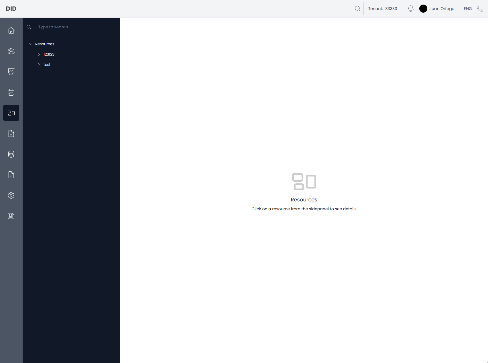 When navigating to the Resources page, you will see the resource tree on the left and an empty view on the right.