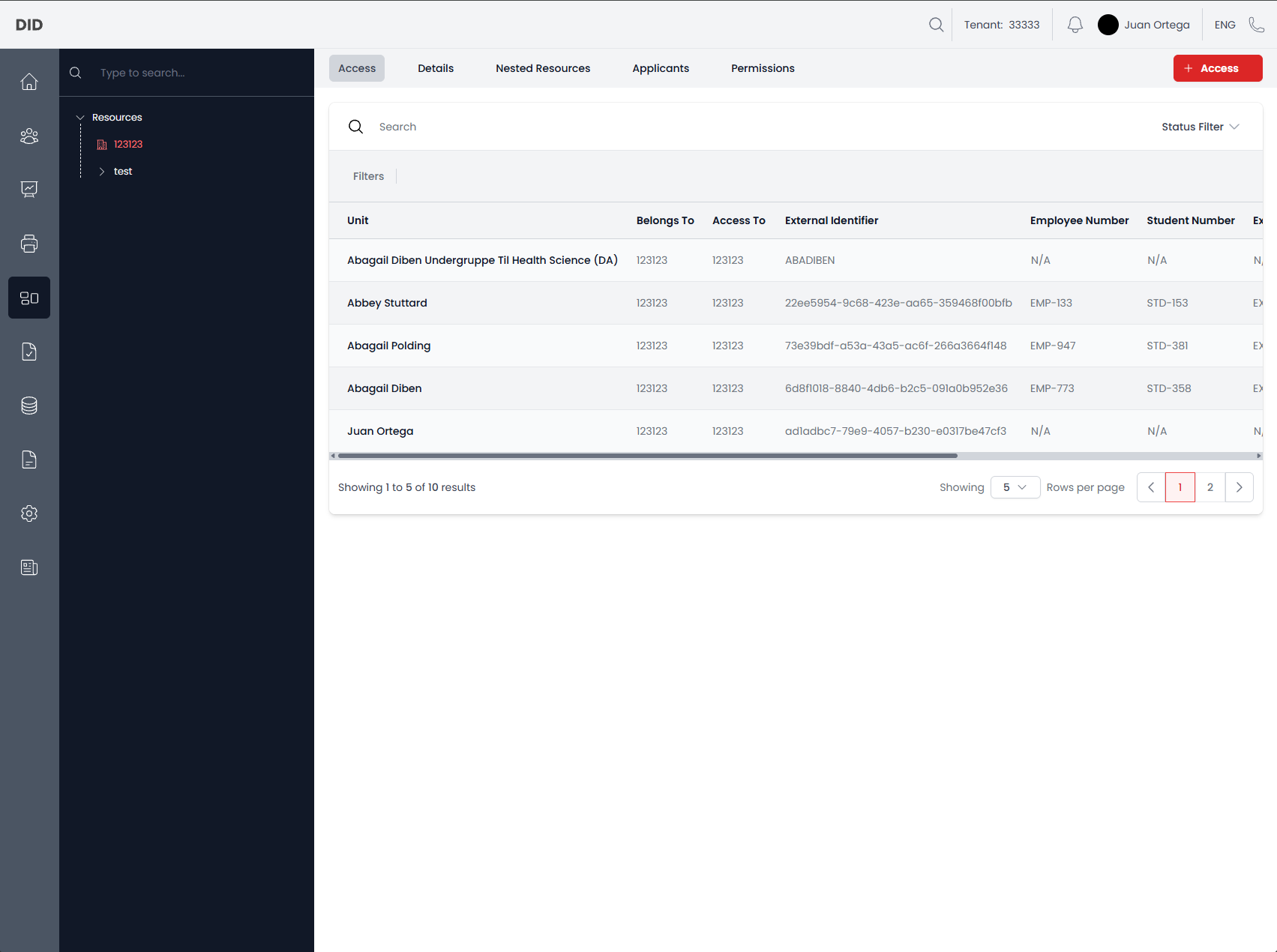 - Access entries and applicants are filtered by resource context — switching resources updates the displayed data.